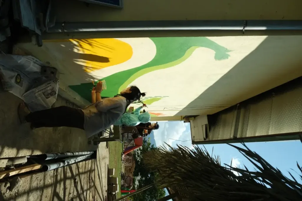 Khai thác những cảnh vật quen thuộc dưới góc nhìn mới, chúng mình đến với Nà Sàng muốn tạo nên một sân chơi “bình dân” nhưng cũng đầy tính sáng tạo cho hơn 132 trẻ em trong bản. Hệt như cách những người nông dân nơi đây trồng lúa trên khu ruộng bậc thang, chúng mình cũng tạo ra “thửa ruộng” của mình với chiếc sân chơi được xây dựng trên hai phần đất khác nhau, chênh nhau 3 mét kết nối nhà văn hóa và khu trường học.